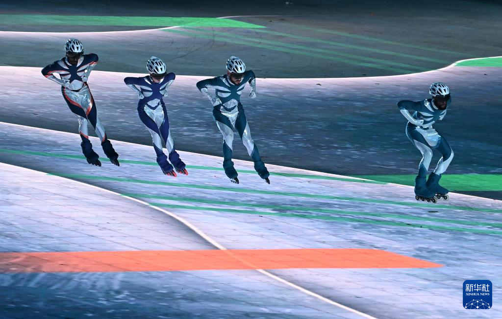 这是2月14日在闭幕式上拍摄的下一届亚冬会主办城市带来的展演。