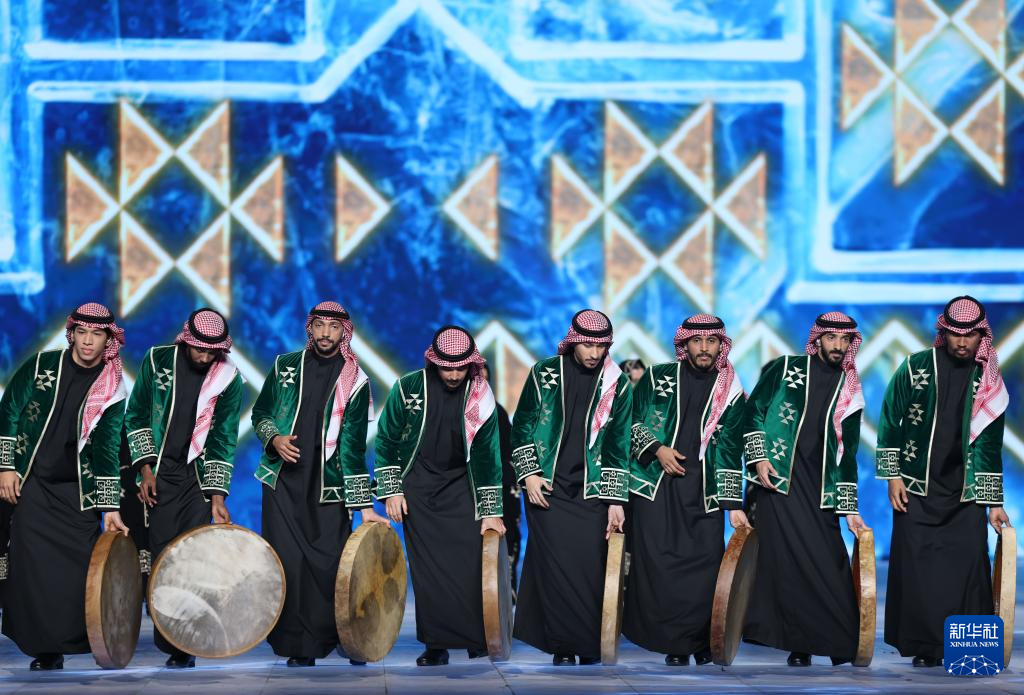 2月14日,中华人民共和国国旗和沙特阿拉伯国旗在闭幕式现场升起。