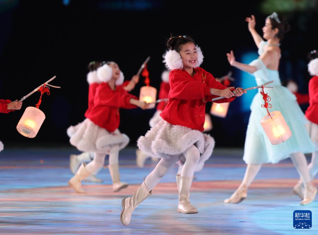 这是2月14日在闭幕式上拍摄的下一届亚冬会主办城市带来的文艺表演。
