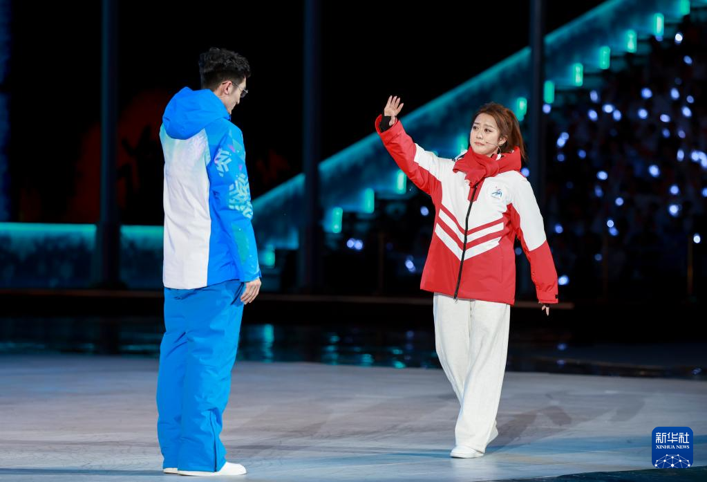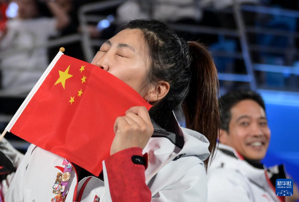 2月14日,中国体育代表团旗手徐梦桃在闭幕式上。