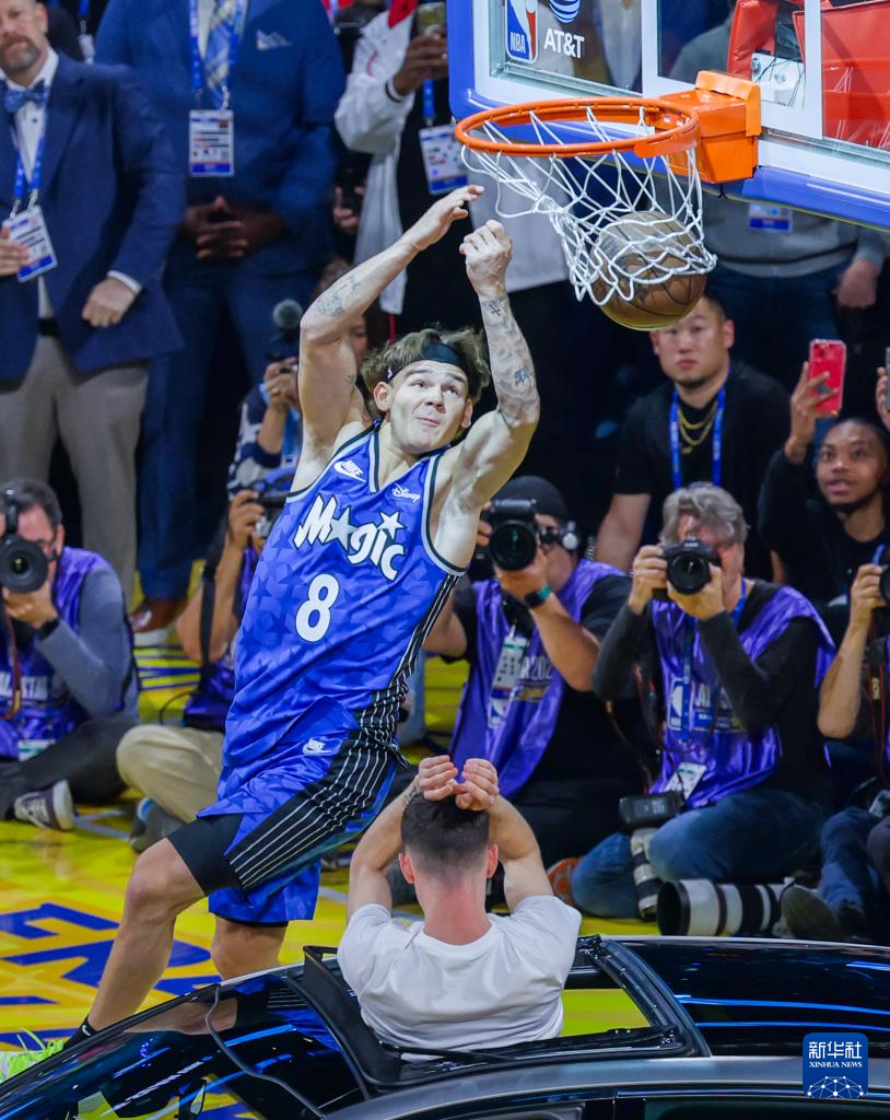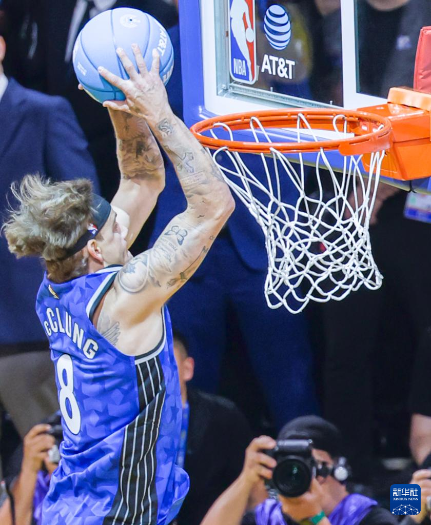 2月15日,麦克朗在扣篮大赛中。新华社发(董旭东摄)