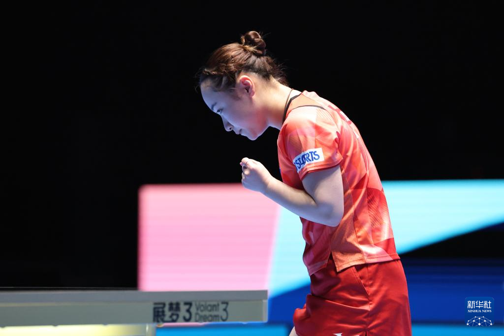 2月22日,伊藤美诚在比赛中庆祝得分。