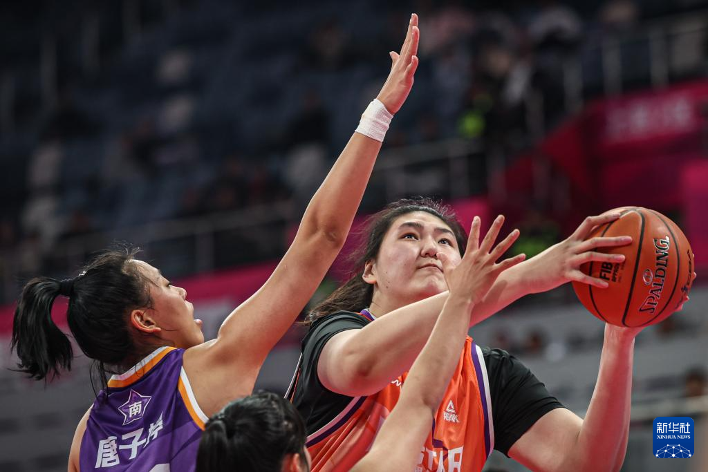 2月22日,南区星锐队球员唐子婷(右)在比赛中投篮。
