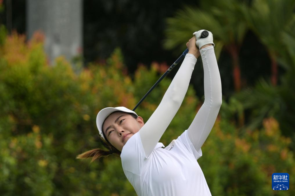 2月28日,中国选手何沐妮在比赛中。她在第二轮比赛中打出75杆,以两轮148杆、高于标准杆4杆的总成绩位列并列第45名。