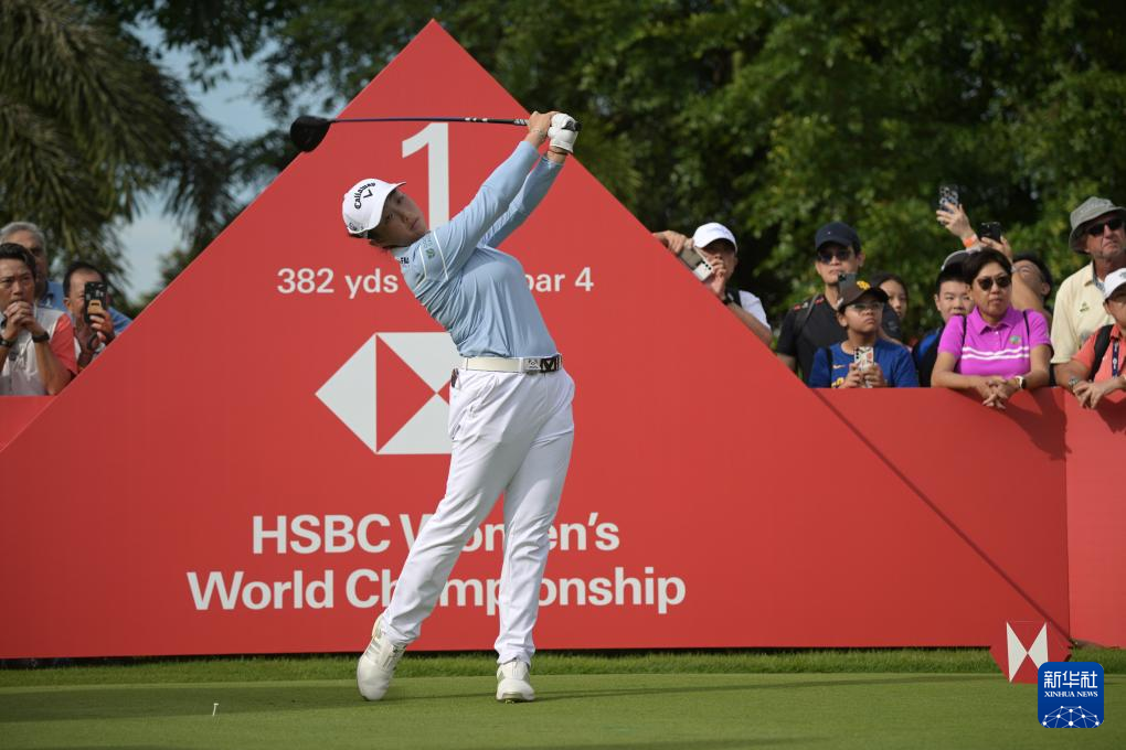 2月28日,韩国选手金阿林在比赛中开球。她在第二轮比赛中打出69杆,以两轮137杆、低于标准杆7杆的总成绩位列第一名。