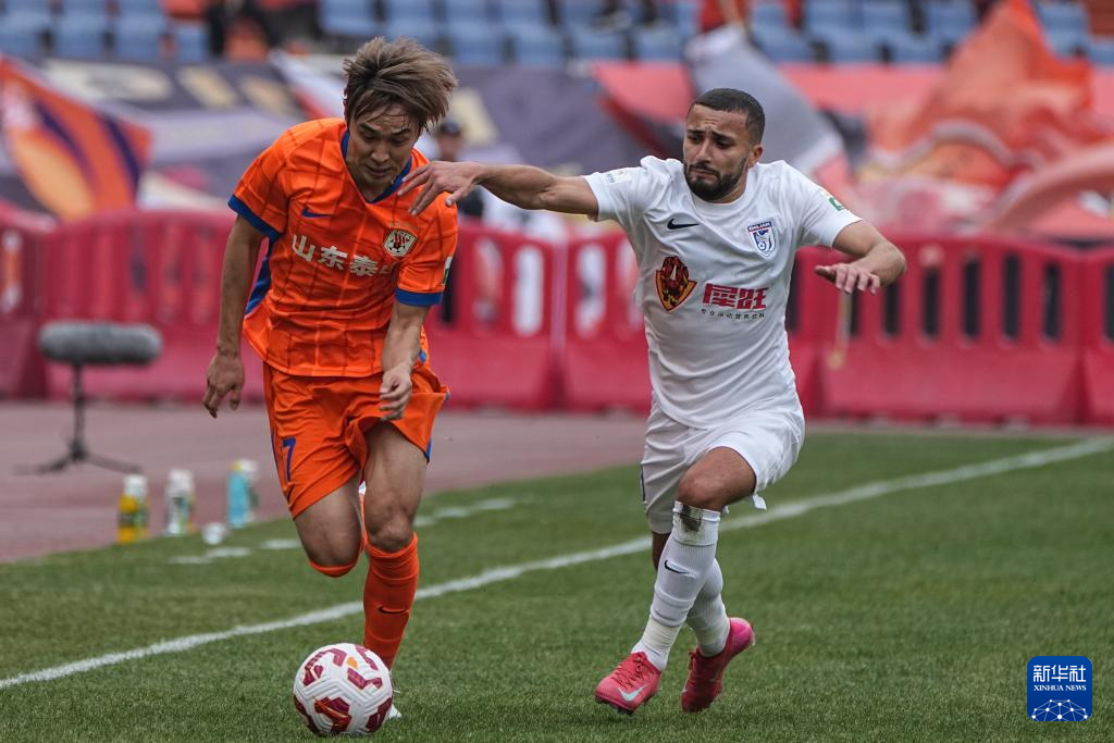 2月28日,山东泰山队球员吴兴涵(左)在比赛中突破。
