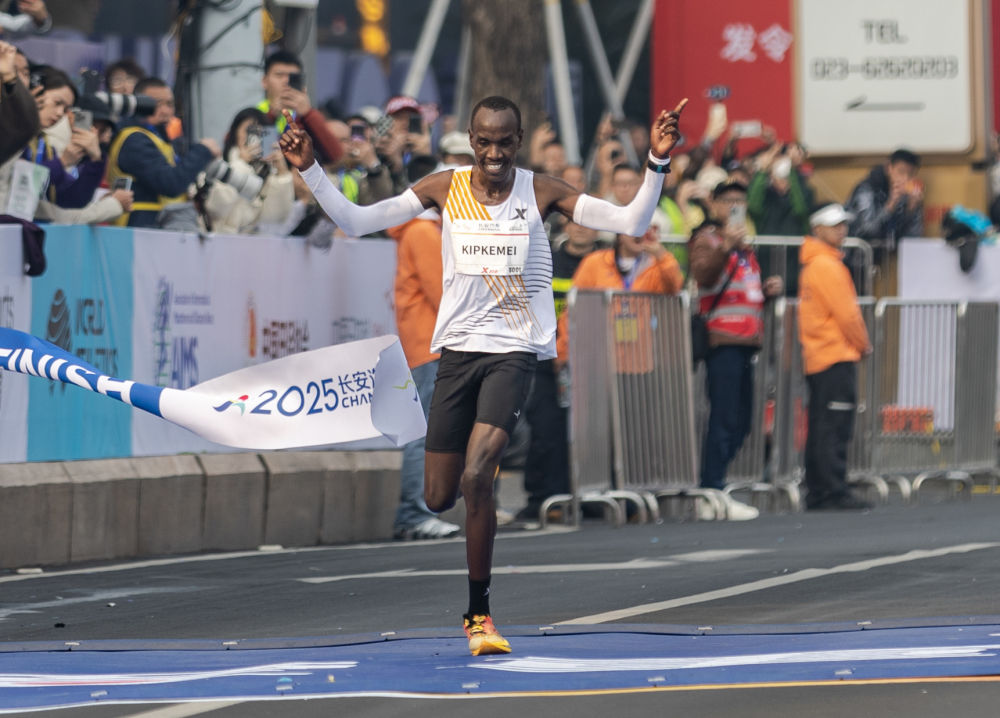 新华社重庆3月2日电(记者谷训、雷明宇)2025重庆马拉松赛2日鸣枪开赛,肯尼亚选手基普克梅以2小时07分18秒的成绩率先冲过终点线,打破男子组赛会纪录。