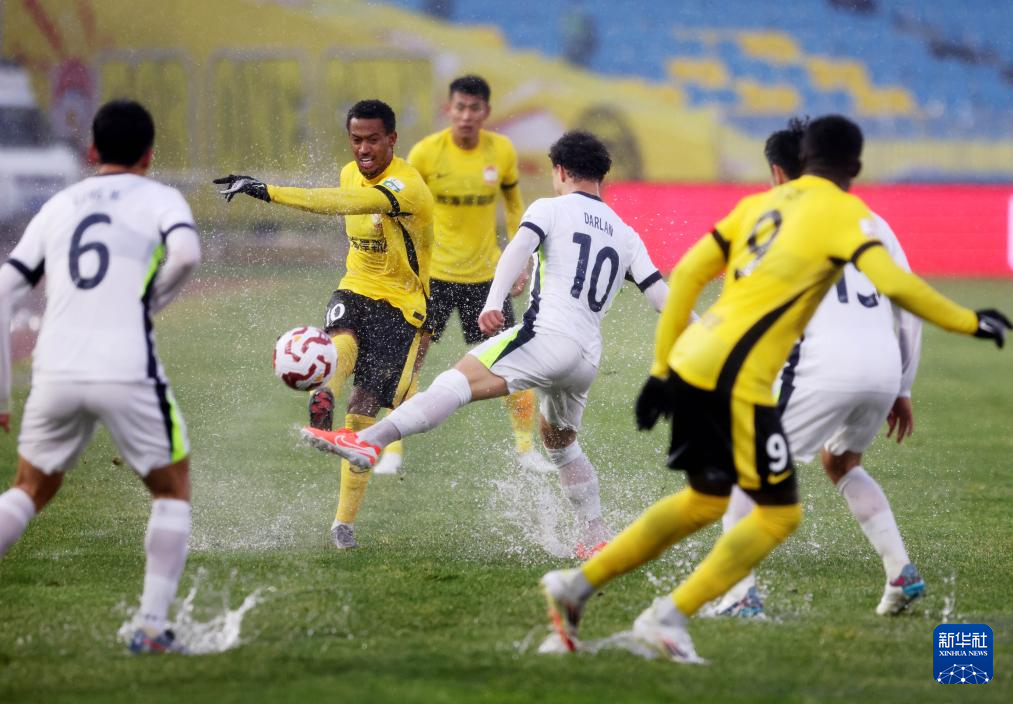 3月2日,武汉三镇队球员达兰(右三)在比赛中进攻。