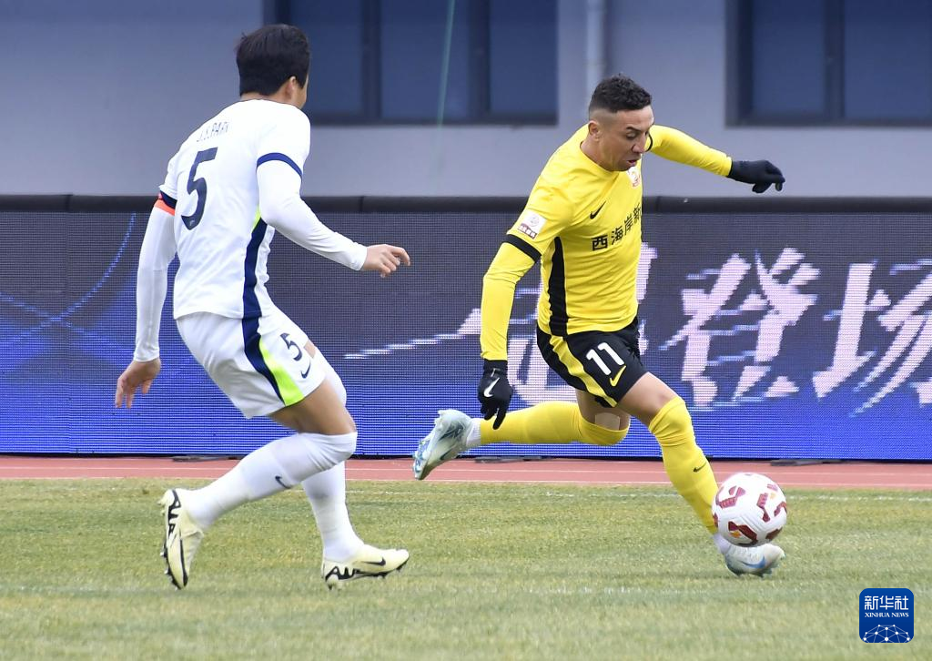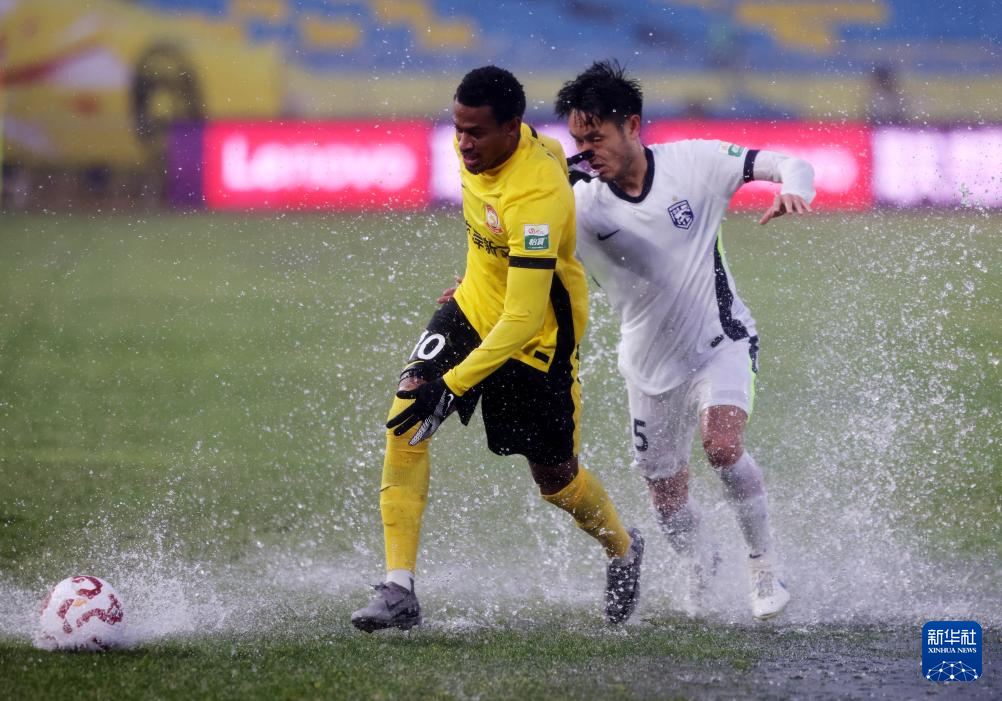 3月2日,青岛西海岸队球员内尔松·卢斯(左)和武汉三镇队球员陈哲超在比赛中拼抢。