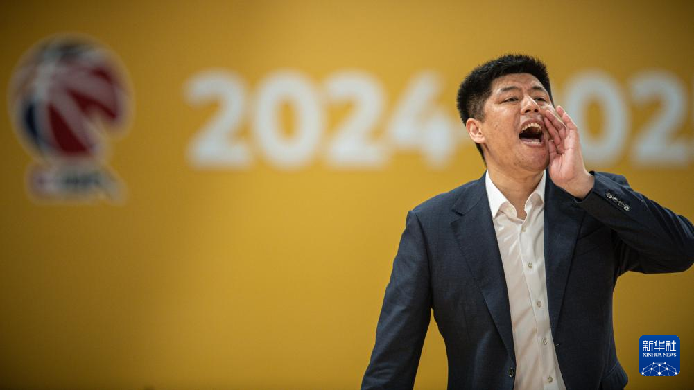 3月5日,山西汾酒队主教练潘江在比赛中指挥。