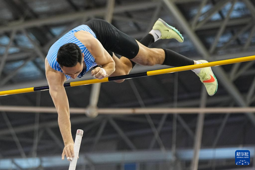 3月8日,山东中泰证券队选手丁邦超在男子撑杆跳高比赛中试跳。他以5米60的成绩获得第一名。
