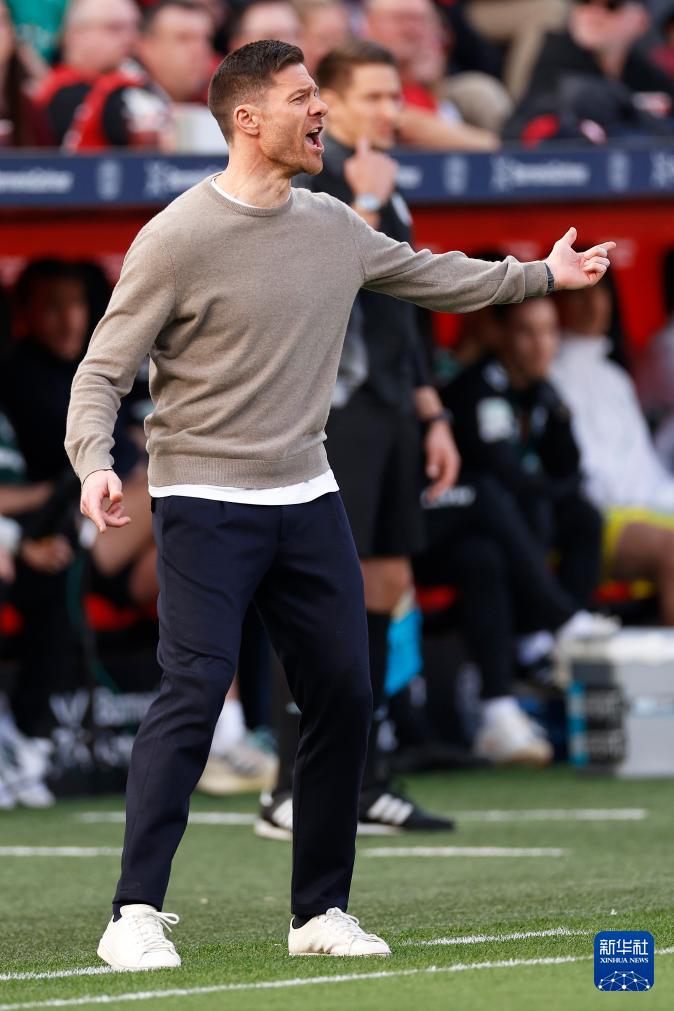 3月8日,勒沃库森队主教练阿隆索在场边指导。