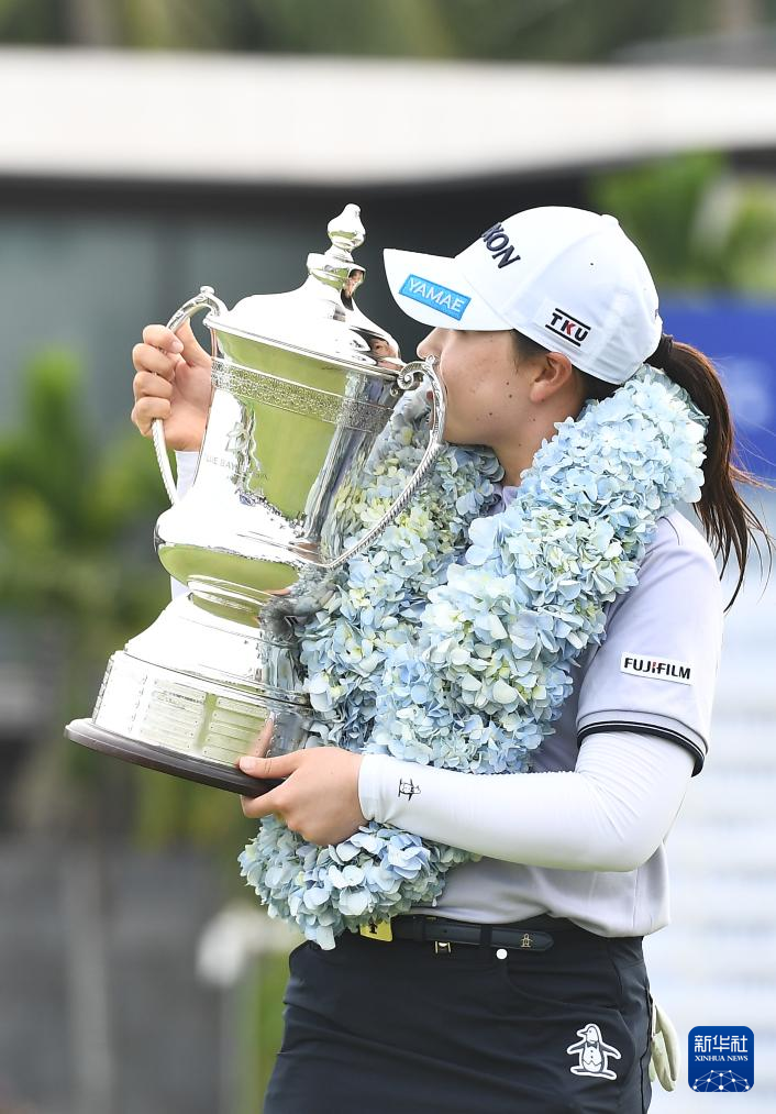 3月9日,日本选手竹田丽央在比赛后。她以271杆、低于标准杆17杆的总成绩获得冠军。