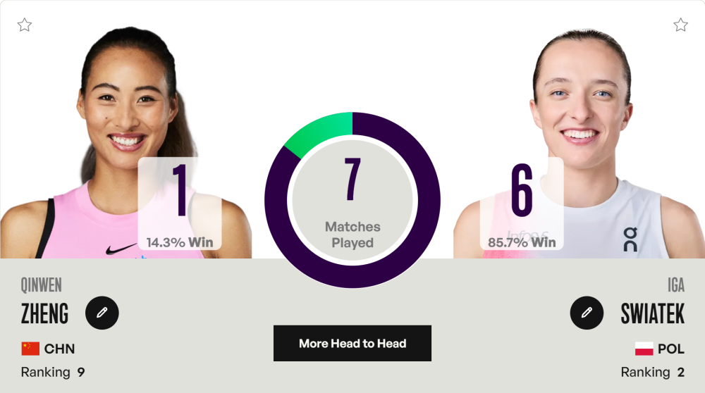 郑钦文下一场比赛的对手是2号种子斯维亚特克。去年的巴黎奥运会网球女单半决赛中,郑钦文击败斯维亚特克,之后夺得奥运金牌。