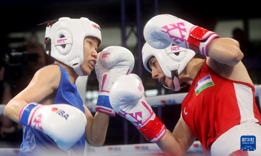 3月12日,中国选手钟雪云(左)与乌兹别克斯坦选手法尔佐娜在45-48公斤级八分之一决赛中。最终,钟雪云不敌法尔佐娜,无缘四分之一决赛。