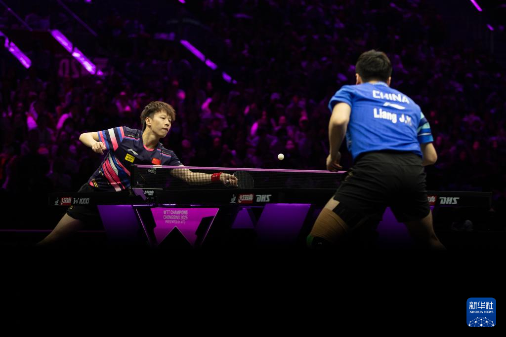 当日,在重庆进行的世界乒乓球职业大联盟(WTT)重庆冠军赛男子单打八分之一决赛中,中国选手梁靖崑3比1战胜队友林高远,晋级八强。