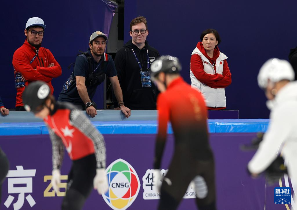 3月15日,中国队主教练张晶(后右一)在场边观察刘少林比赛。刘少林无缘晋级下一轮。