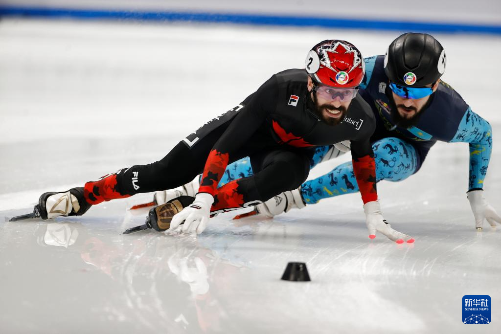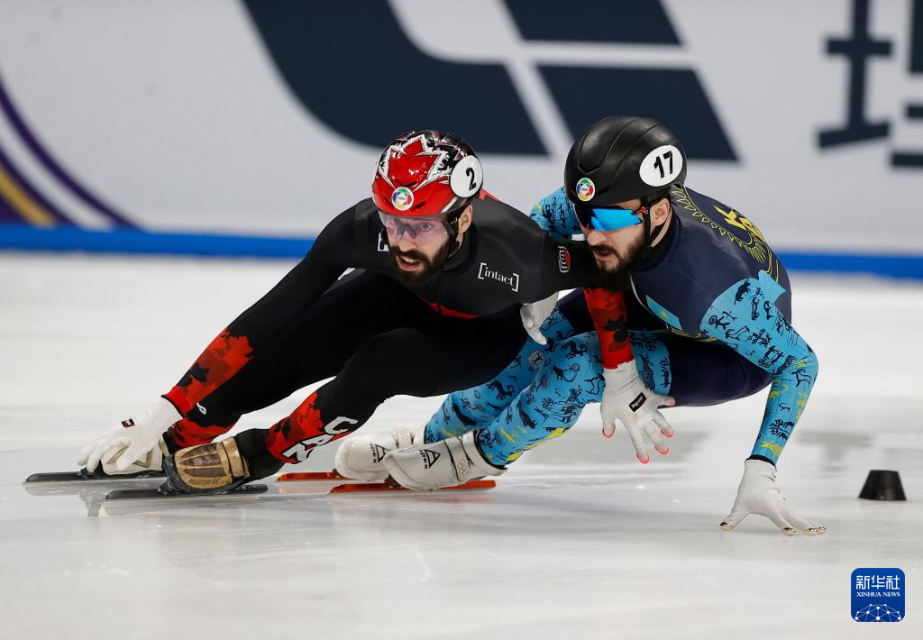 3月15日,加拿大选手史蒂文·杜博伊斯(左)和哈萨克斯坦选手丹尼斯·尼基沙在比赛中。最终他们分获冠军和亚军。