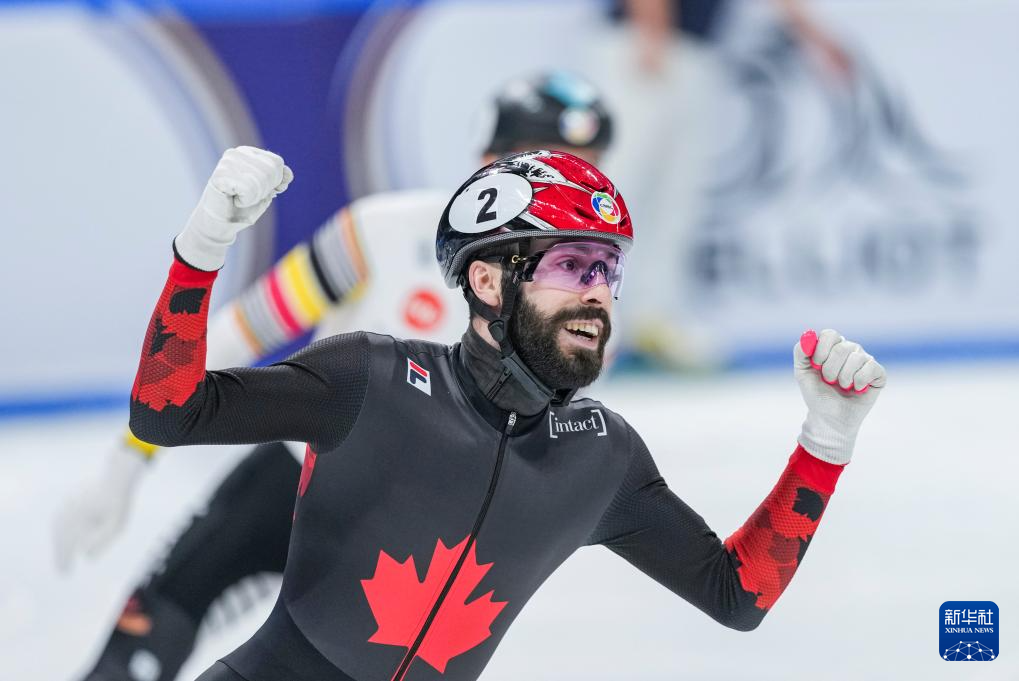 3月15日,加拿大选手杜波依斯在冲线后庆祝夺冠。