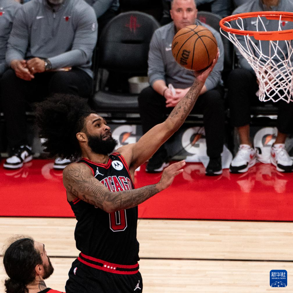 3月15日,公牛队球员球员科比·怀特 (右)在比赛中上篮。