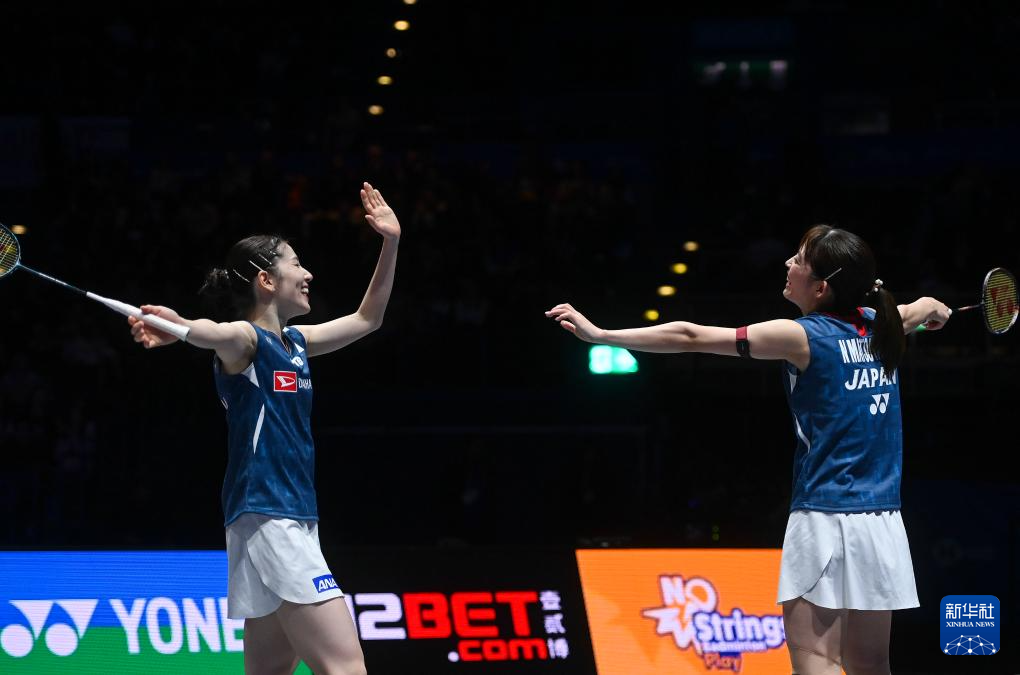 3月15日,松山奈未/志田千阳(左)在比赛中。