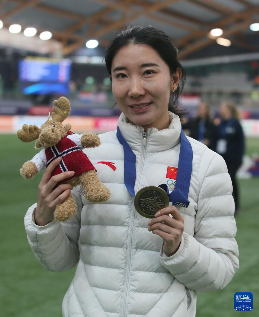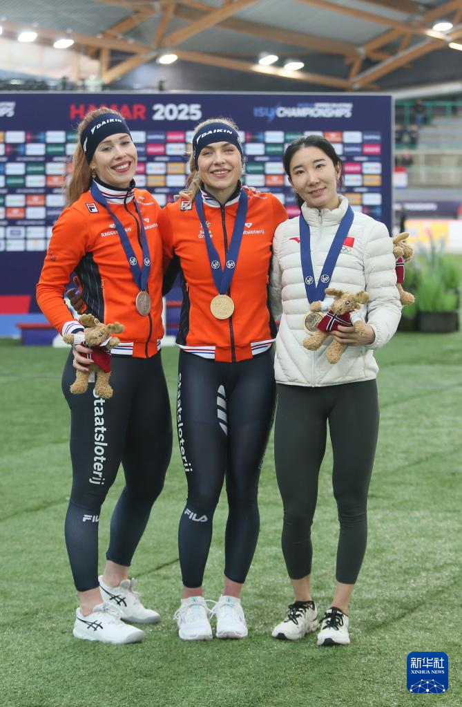 当日,在挪威哈马尔举行的2024-2025赛季速度滑冰世界锦标赛女子1500米比赛中,中国选手韩梅获得季军。