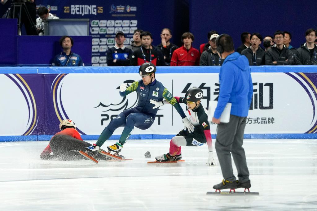 15日的男子5000米接力半决赛还剩最后两圈时,荷兰队选手试图超越处在领先位置的刘少昂,两人发生接触后双双摔出赛道,但中国队交接后仍以并列第二冲线。最终荷兰队被判犯规,中国队晋级决赛。据中国队领队刘辰宇介绍,刘少昂与对手发生碰撞后撞向护墙的过程中,自己左脚的冰刀插到了右膝附近区域。在医院缝针时,刘少昂跟医生说了好几遍“请您把针缝得紧一点,我明天还要参赛”。