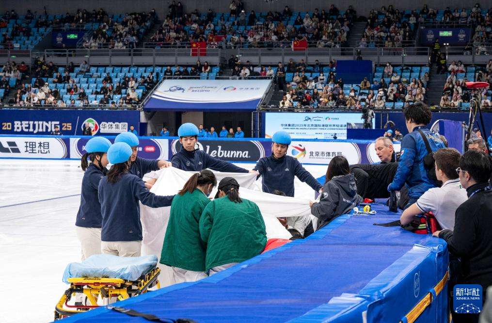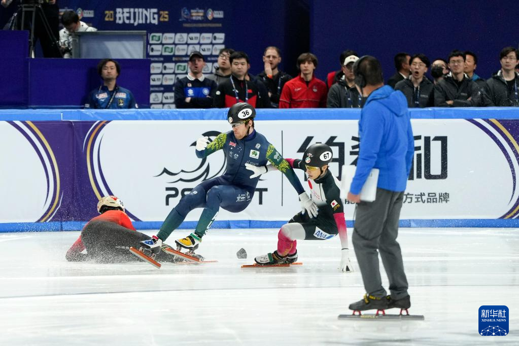 当日,2025年国际滑联世界短道速滑锦标赛男子1000米四分之一决赛在北京首都体育馆举行。
