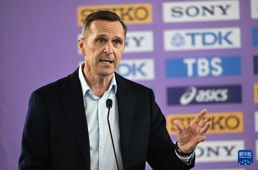 3月20日,世界田联首席执行官乔恩·里金在发布会上。
