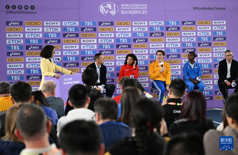 当日,2025南京世界田联室内锦标赛赛前新闻发布会在江苏南京体育训练中心室内田径馆举行。