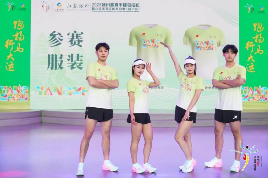 据悉,本次完赛奖牌以千年文脉为基底,集大运河、五亭桥等元素于一身,创新融合滚轴设计,结合世界非遗“雕版印刷”工艺,选手可在平整的表面用其拓印“鉴真远行图”。参赛服采用绿色为主色调,正面将“YANGZHOU”字母进行艺术化设计,并将奔跑人物和扬州地标融入其中。