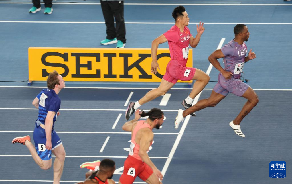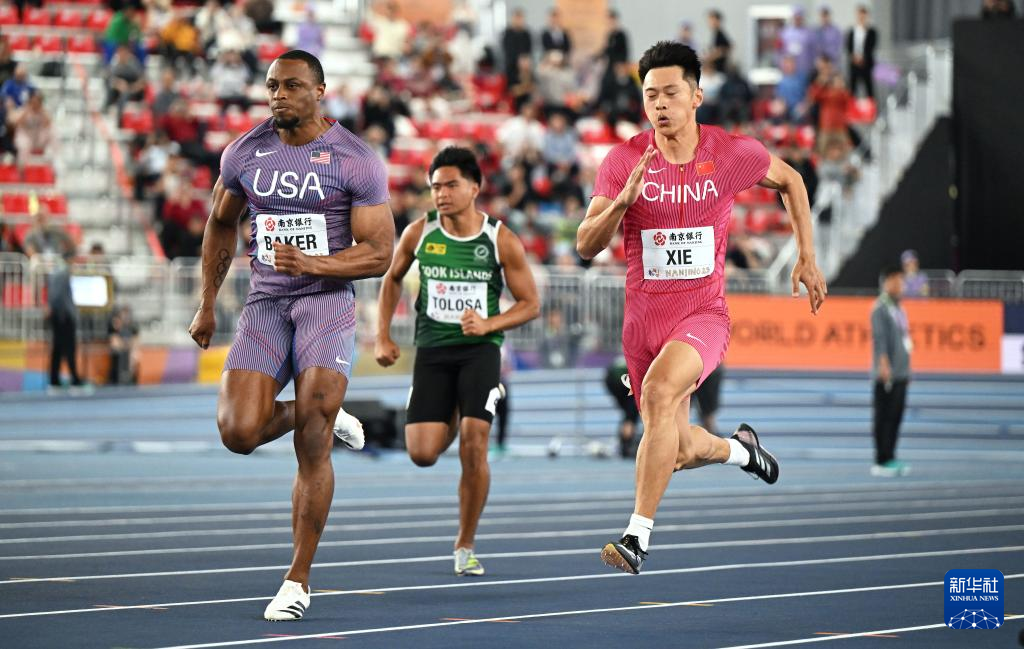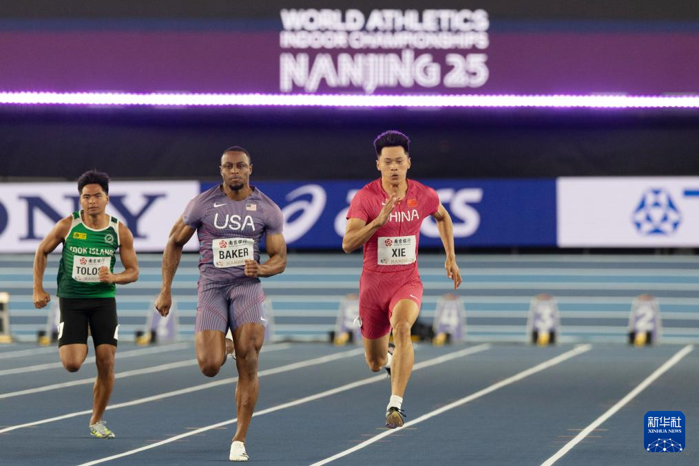当日,2025南京世界田联室内锦标赛男子60米预赛在江苏南京体育训练中心室内田径馆举行,中国选手谢震业晋级半决赛。