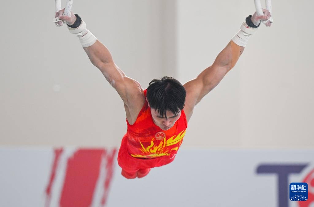 3月20日,中国选手兰星宇在吊环资格赛中。