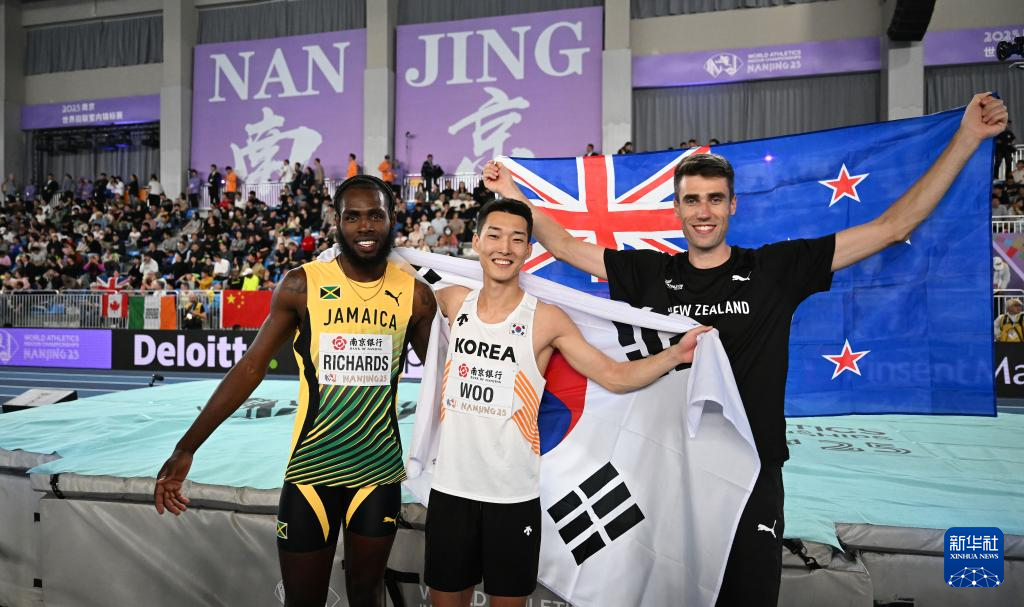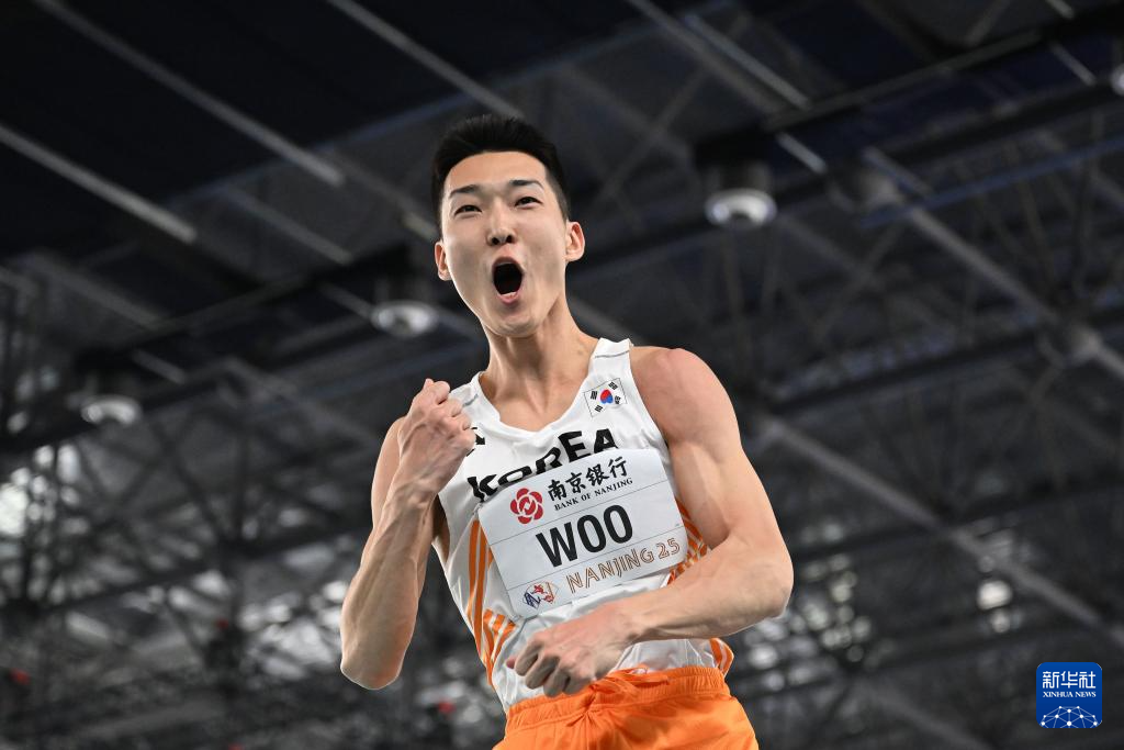 当日,在江苏南京举行的2025南京世界田联室内锦标赛男子跳高决赛中,韩国选手禹相赫夺得冠军。