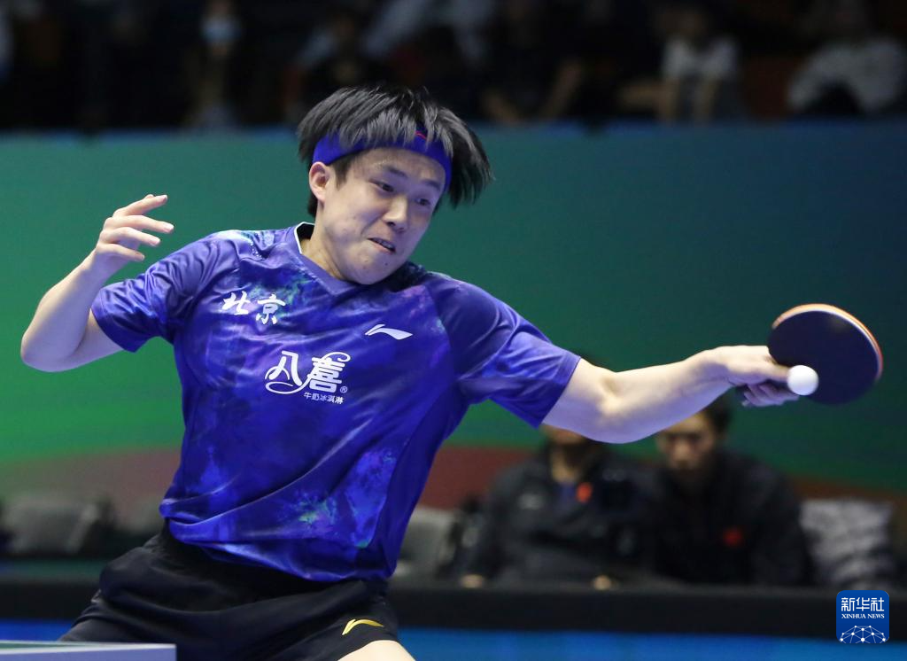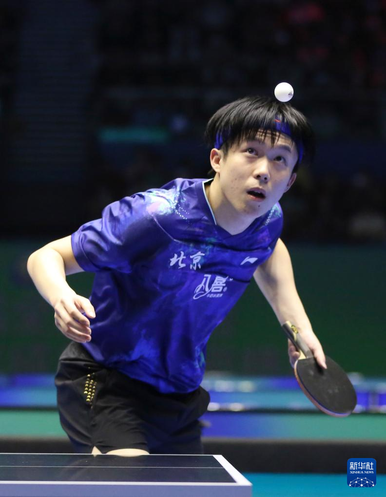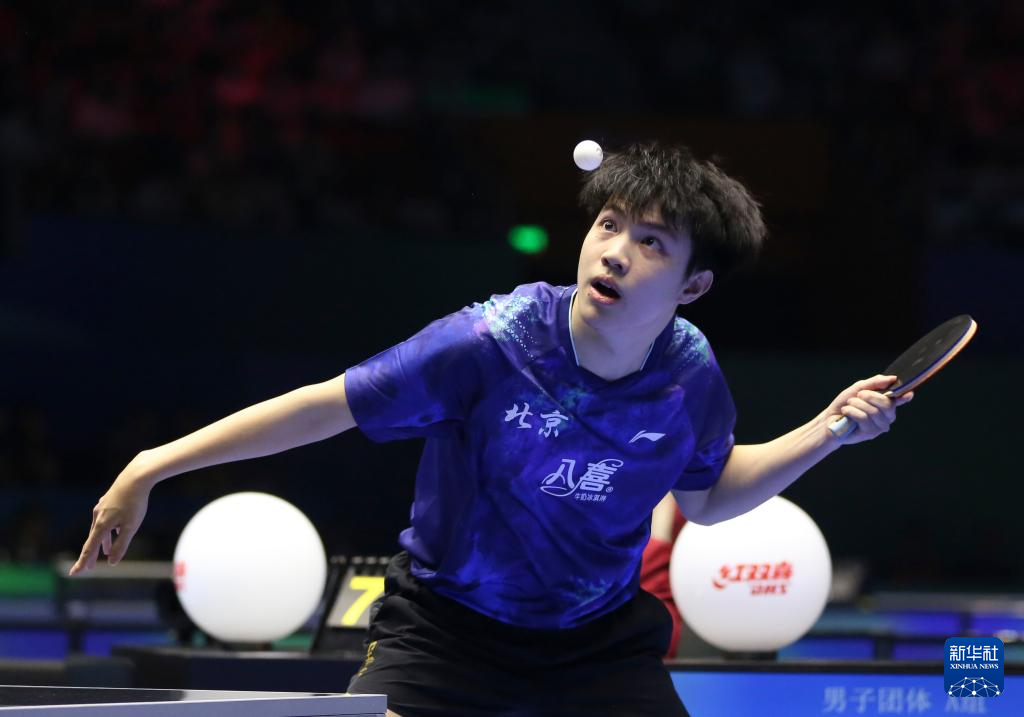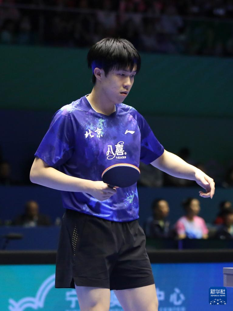 3月22日,北京八喜队选手王楚钦在比赛中。他3比0战胜辽宁队选手袁励岑。