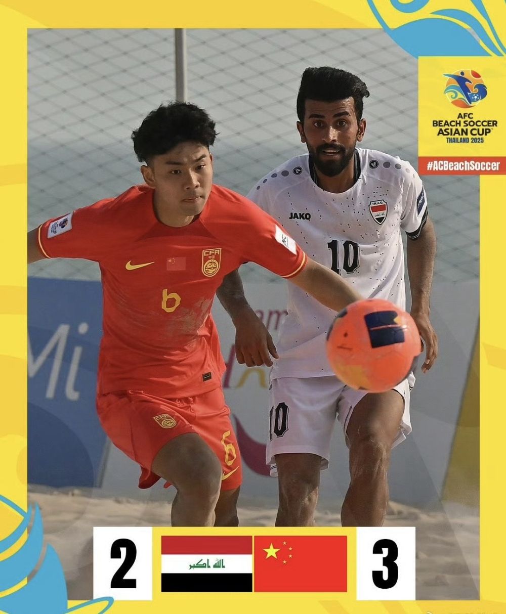 新华社曼谷3月22日电(记者林昊)22日在泰国芭提雅举行的2025年沙滩足球亚洲杯小组赛第二轮中,中国男子沙滩足球队以3:2逆转击败伊拉克队。