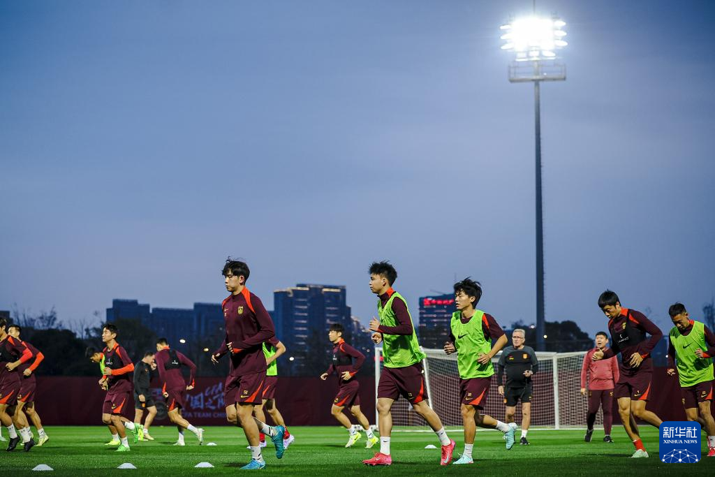 当日,中国国家男子足球队在浙江杭州进行赛前训练。中国队将于25日在2026美加墨世界杯亚洲区预选赛18强赛C组第八轮比赛中主场对阵澳大利亚队。