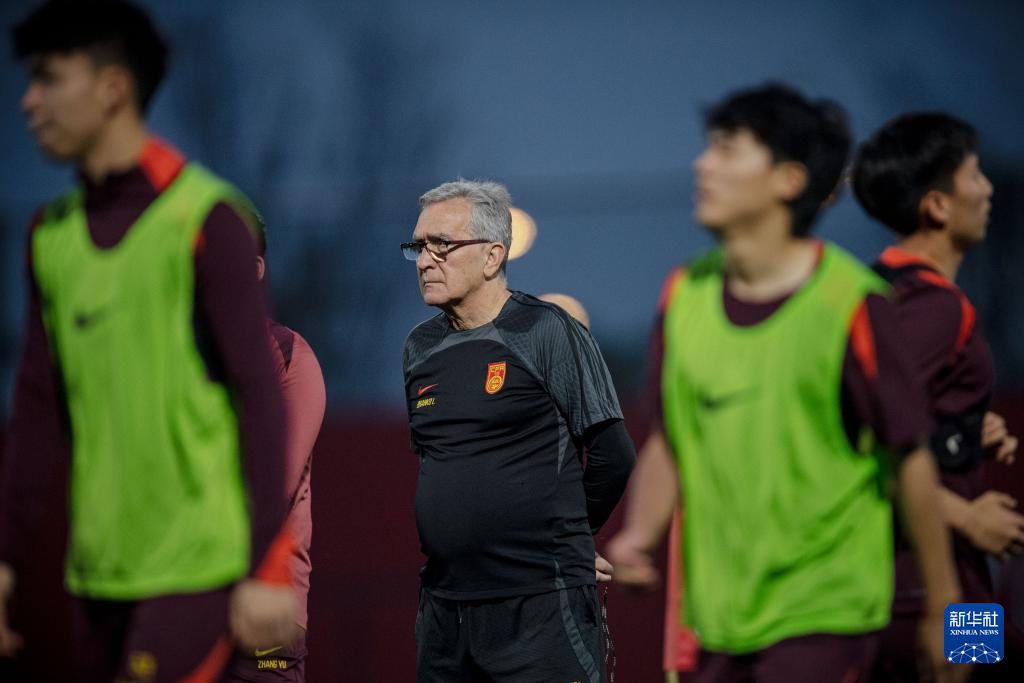 3月23日,中国队主教练伊万科维奇(中)在训练中。