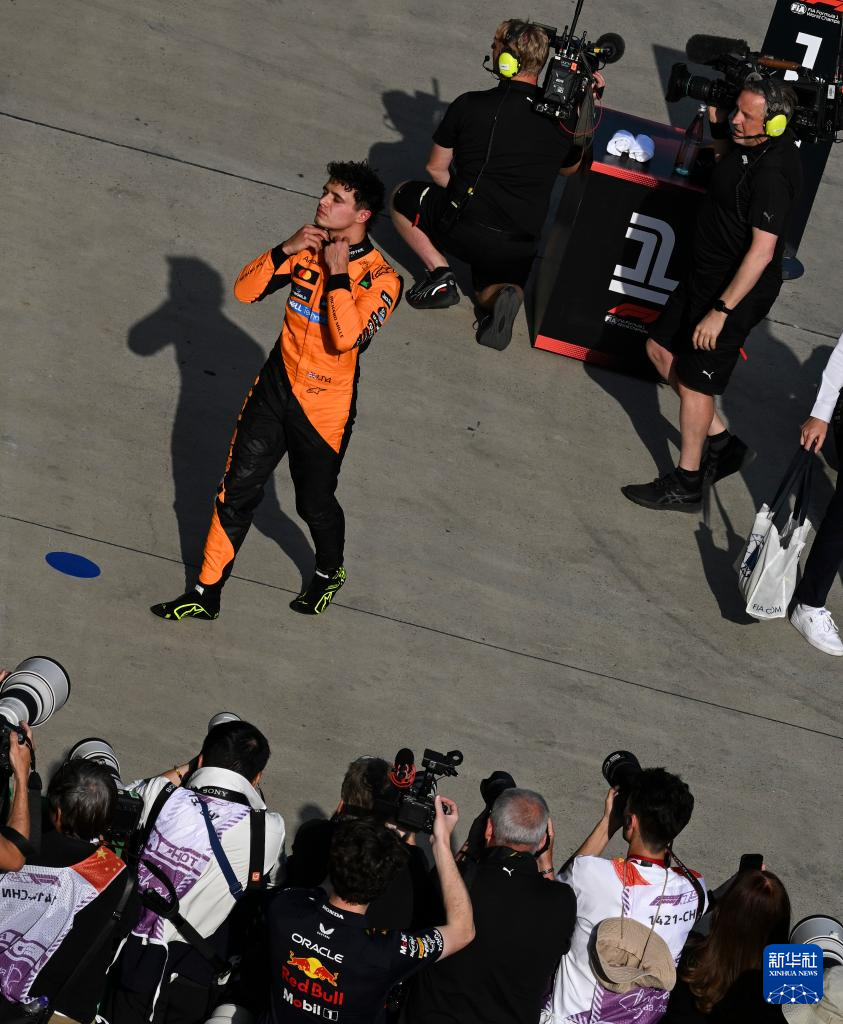 3月22日,迈凯伦车队英国车手诺里斯(上左)在比赛后。他获得第三名。