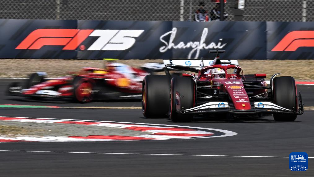 3月22日,法拉利车队摩纳哥车手勒克莱尔(右)和队友汉密尔顿在比赛中。