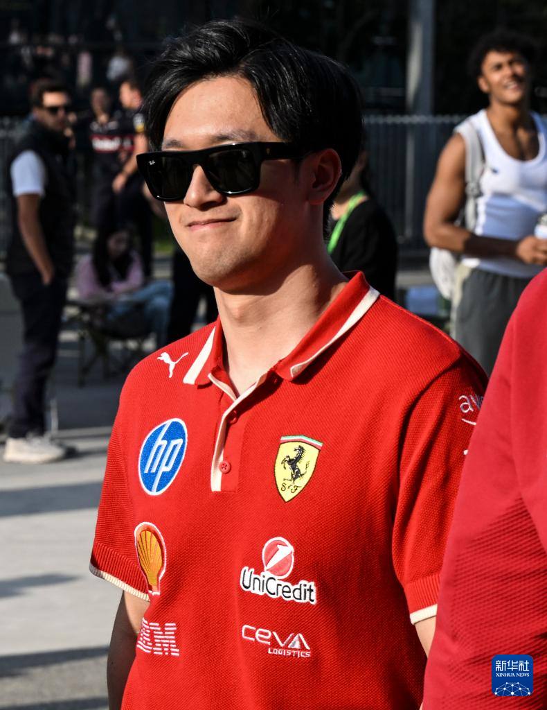 3月22日,法拉利车队储备车手周冠宇准备进入工作区。