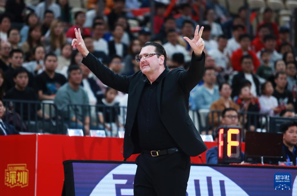 3月23日,福建晋江文旅队主教练凯撒在场边指挥。