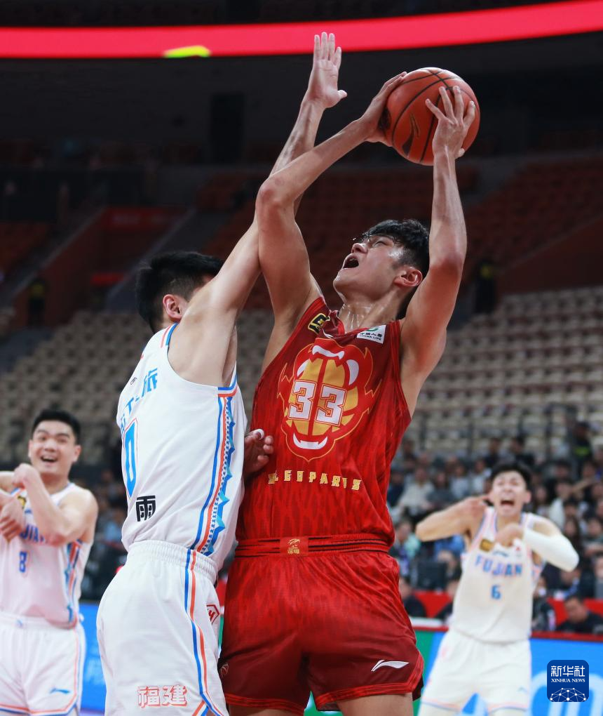 3月23日,福建晋江文旅队球员约瑟夫·杨在比赛中上篮。