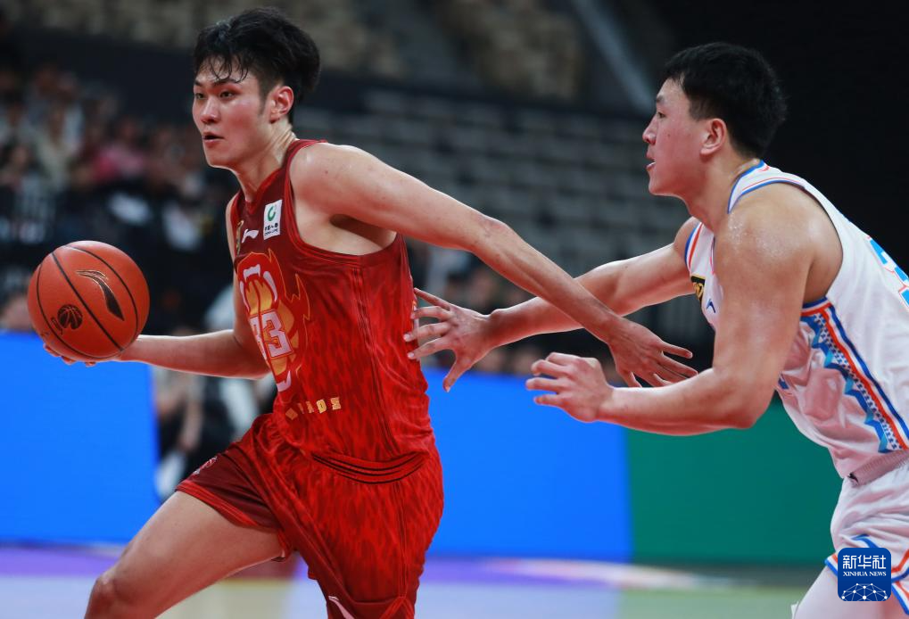 3月23日,深圳马可波罗队球员王浩然(前右)在比赛中。