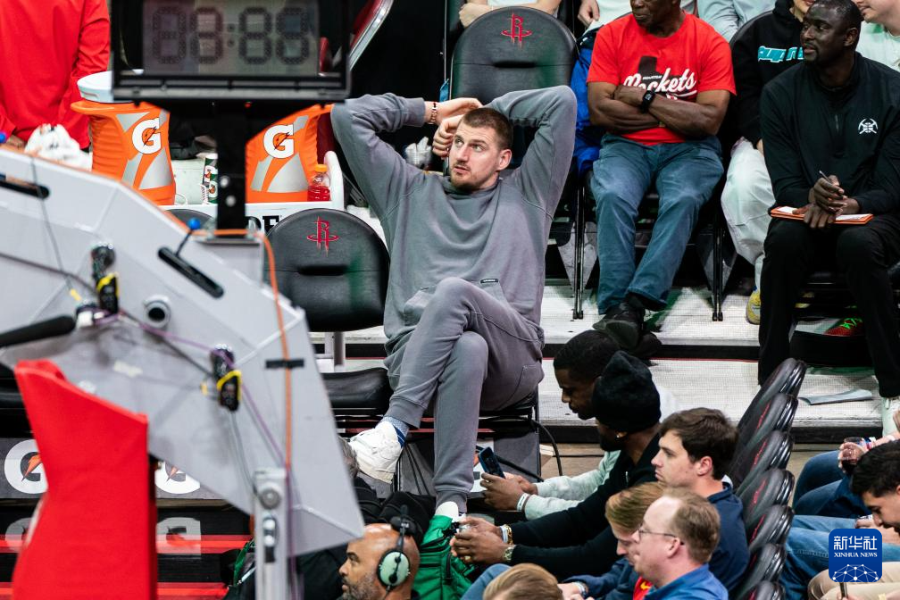 3月23日,掘金队球员尼古拉·约基奇在场边观战。
