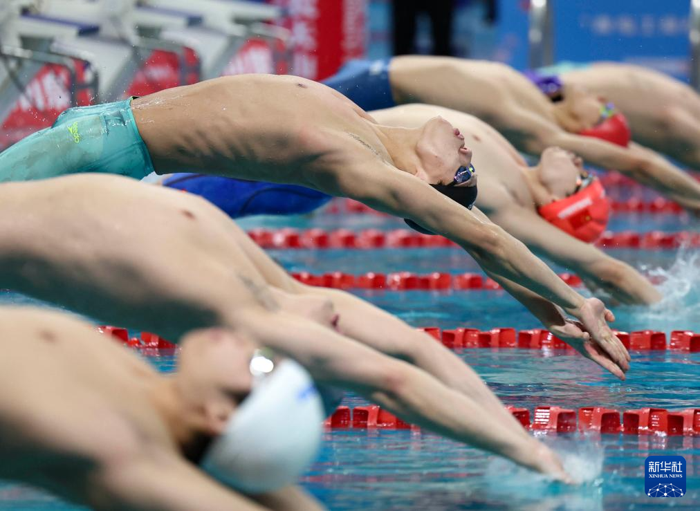 3月23日,浙江寿仙谷队选手何峻毅在男子50米自由泳决赛中。最终他以22秒01的成绩获得冠军。