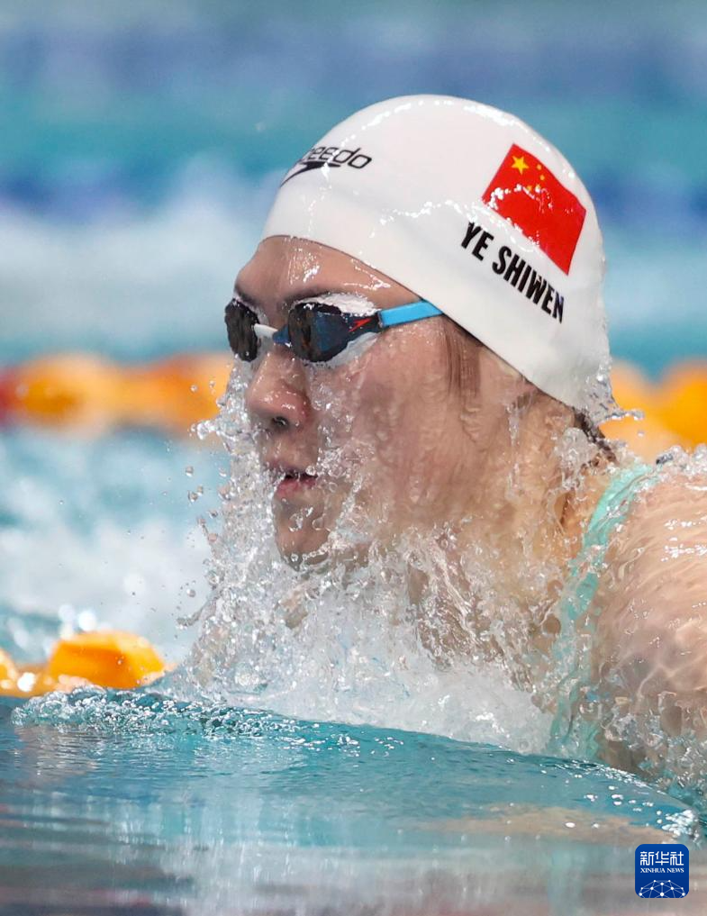 3月23日,浙江寿仙谷队选手叶诗文(左)在女子100米蛙泳决赛中。最终她以1分07秒81的成绩获得冠军。