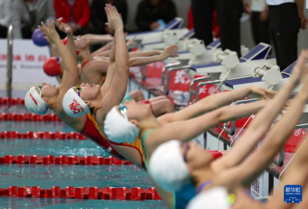 3月23日,江西浩沙队选手万乐天(左二)在女子50米仰泳决赛中出发。最终她以27秒09的成绩获得冠军。