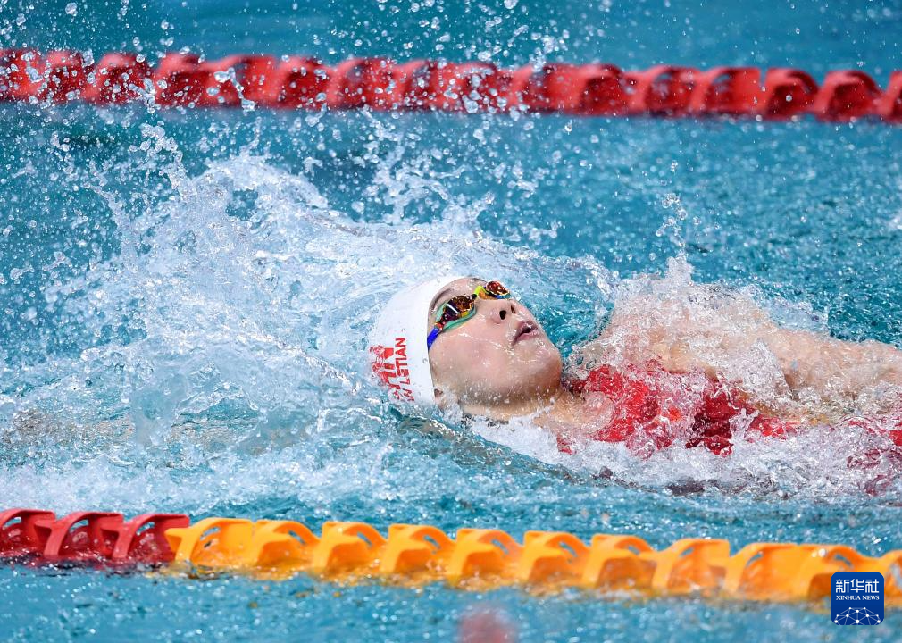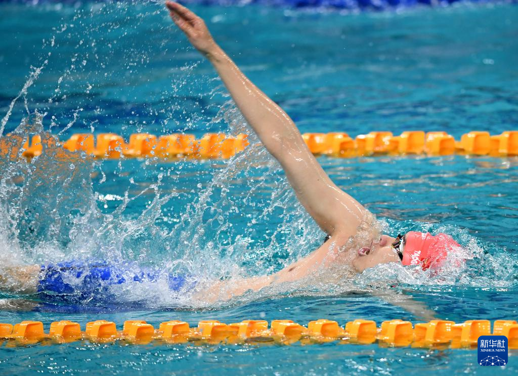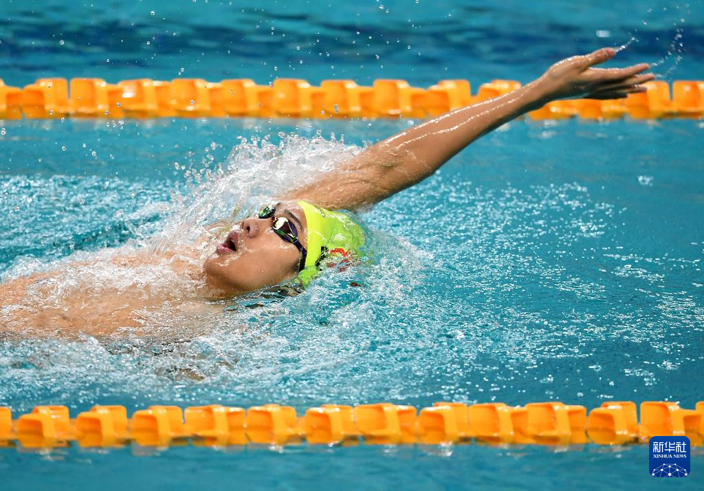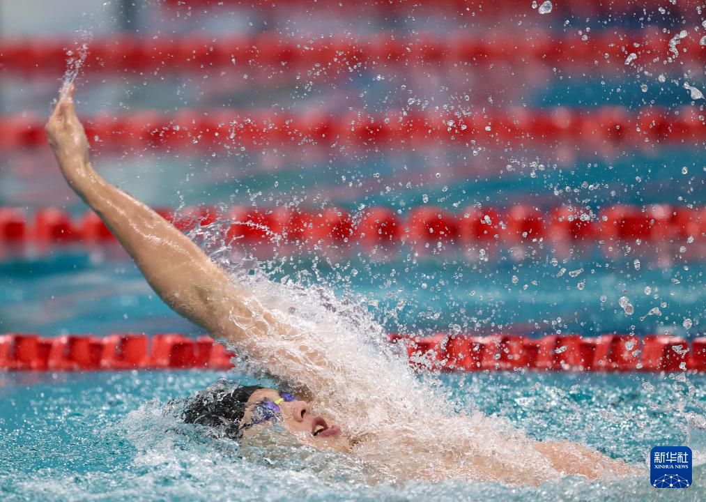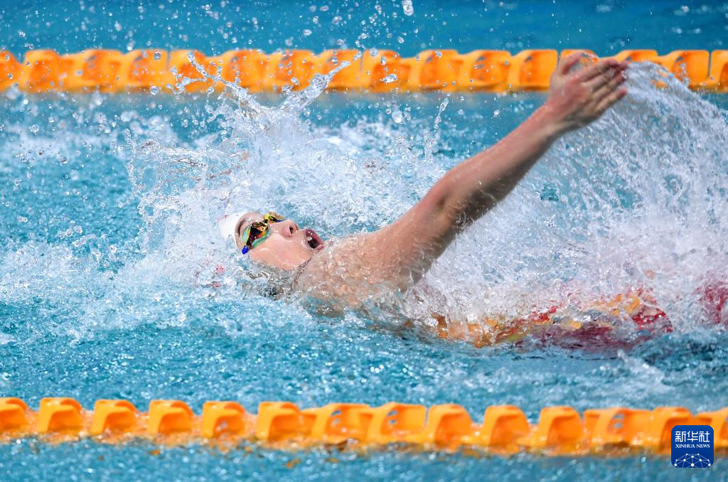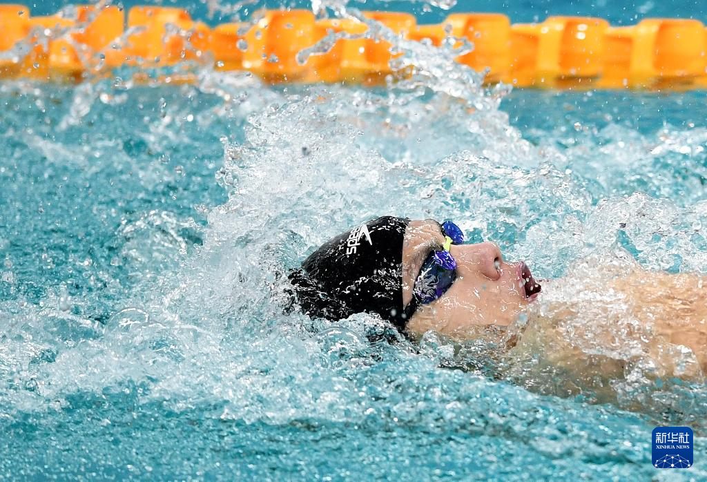 3月23日,河南队选手禹景铭(上)在男子200米仰泳决赛中出发。最终他以1分58秒43的成绩获得冠军。