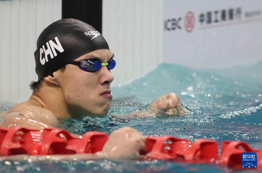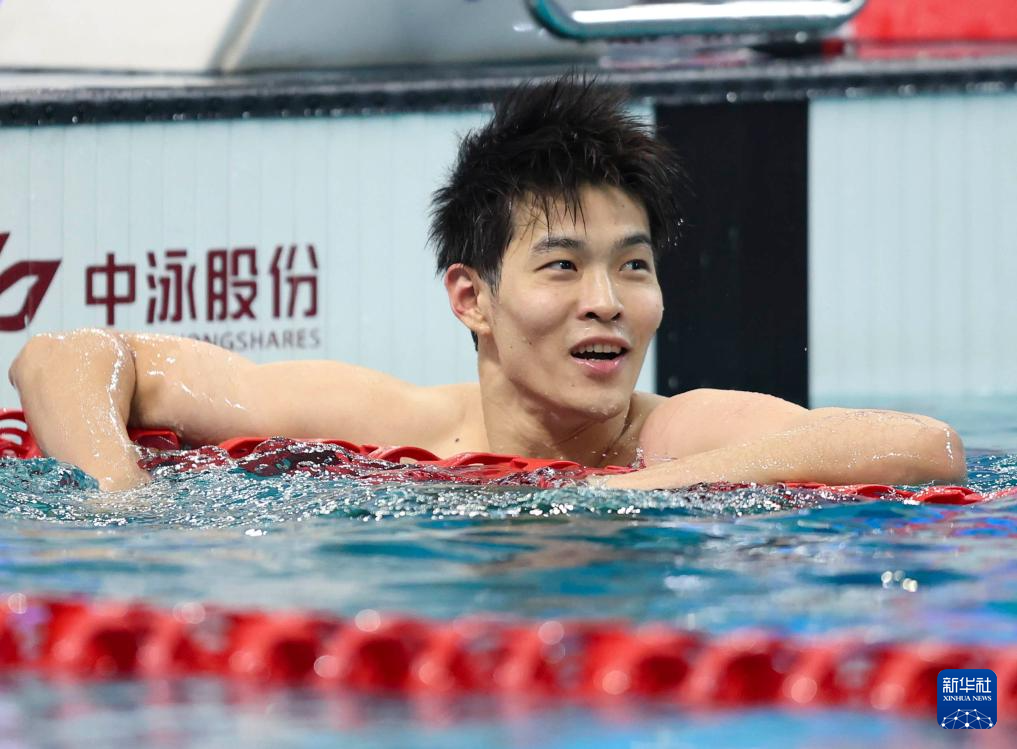 3月23日,浙江寿仙谷队选手何峻毅在男子50米自由泳决赛后。最终他以22秒01的成绩获得冠军。